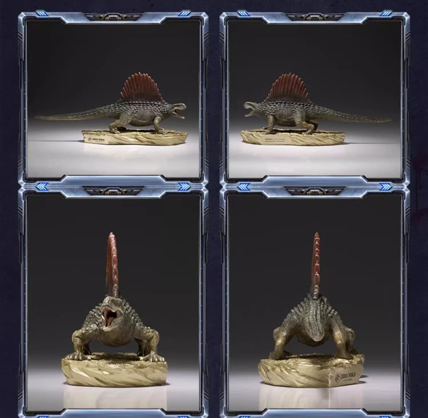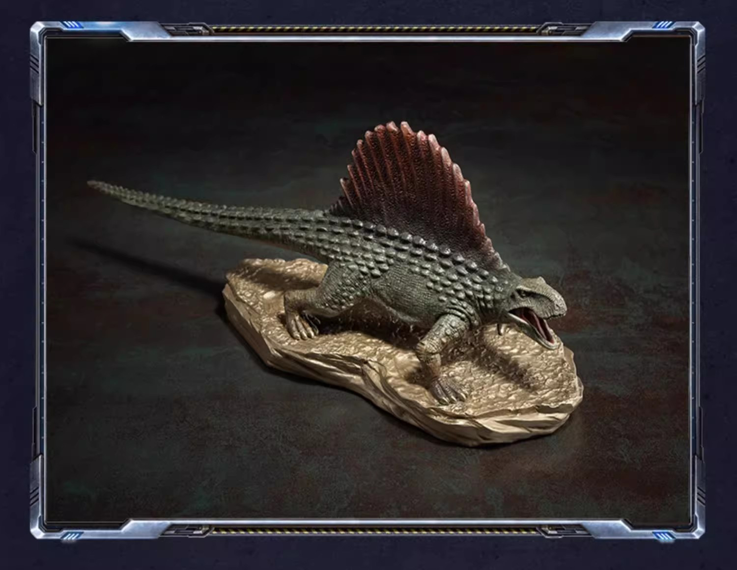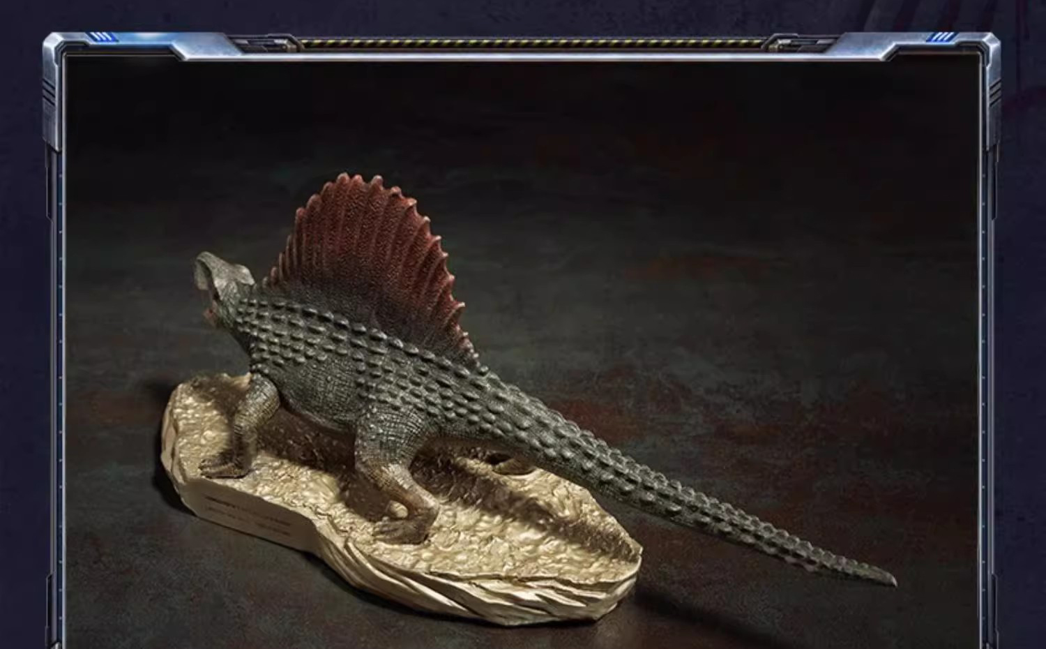 Title of the Work: JURASSIC WORLD--DIMETRODON Item No.: D006007 Material: Brass Brand: TONGSHIFU--Licensed by UCS LLC and Amblin Limited Surface Treatment: Hand Painting Product Dimensions:24cm L × 7.5cm W × 11cm H Net Weight: about 0.8kg